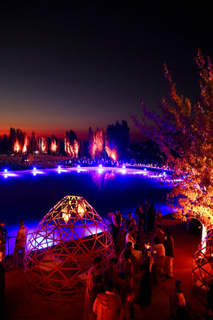 ZOME is made with 350 precision made bamboo strips. It is a self standing structure that does not need any support or anchoring to be stable. ZOME is 3.0m in diameter and 2.8m high.